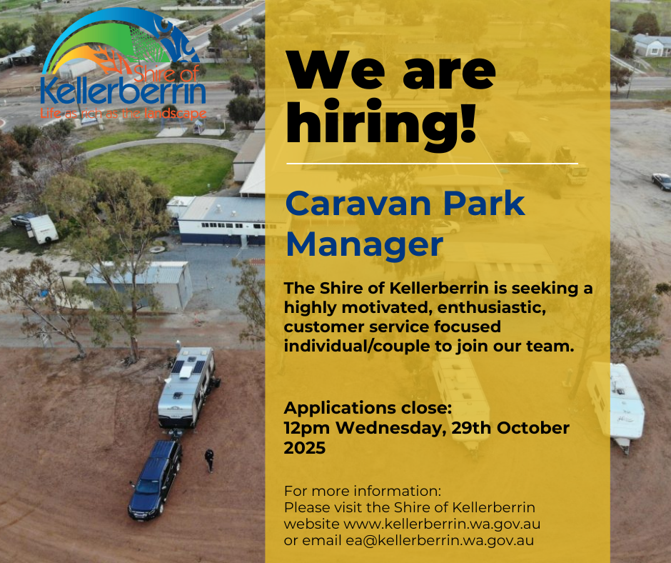 Applications should be sent to: ea@kellerberrin.wa.gov.au or mailed to Mr Raymond Griffiths, Chief Executive Officer, Shire of Kellerberrin, PO Box 145, KELLERBERRIN WA 6410 marked “Private & Confidential - CPM Shire of Kellerberrin”. Applications close Wednesday, 29th October 2025 at 12 noon.