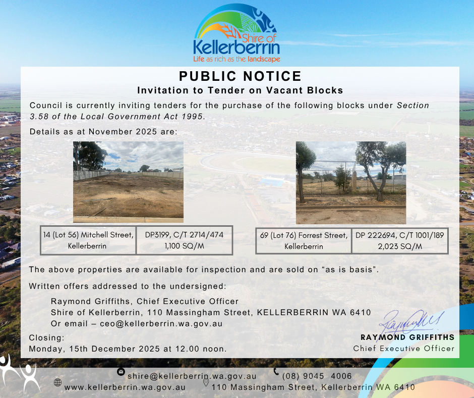 PUBLIC NOTICE - Invitation to Tender on Vacant Blocks